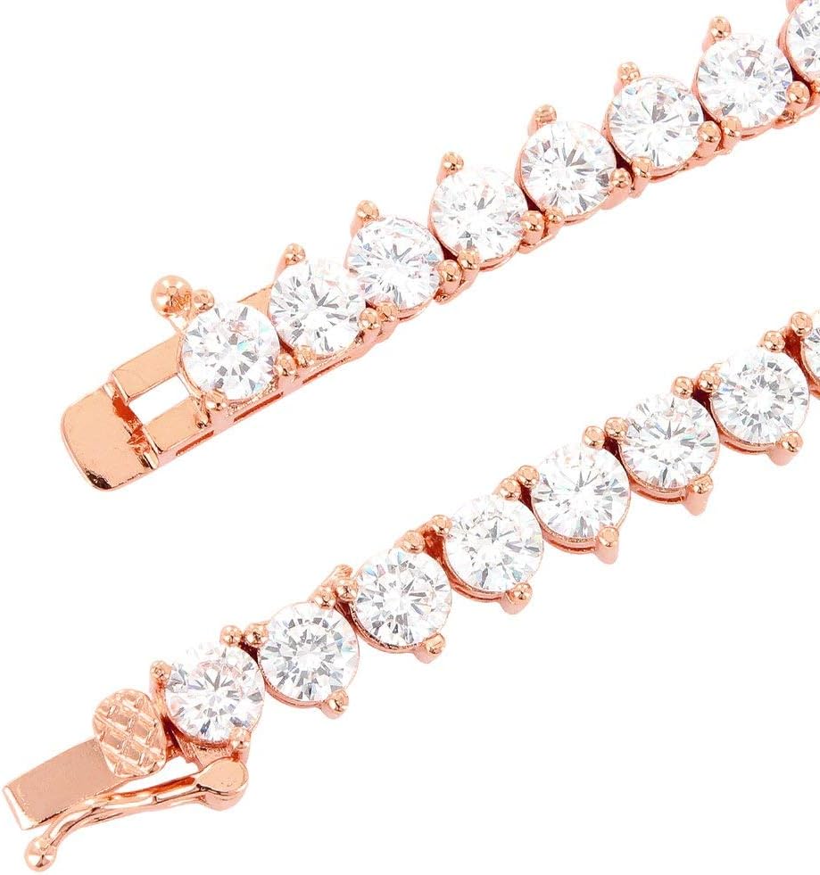 Tennis Link Design 3 Prong/4 Prong 4MM Necklace 1 Row Lab Created Diamonds 14K Rose Gold Finish Pink stones Brand New at manufacturers price. The stone setting is basket and looks very classy. Makes it a top fashion accessory to complement your wardrobe with the sleek, contemporary styling offered by Bling Bling NY jewelry. Please feel free to ask me any question.Thank you for looking. Great quality at an amazing price. And this makes a great gift.