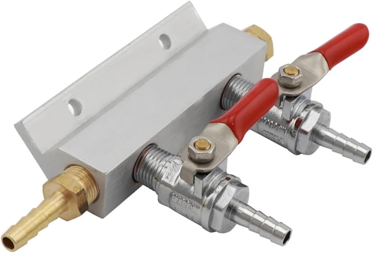2 Way Homebrew Gas Distributor CO2 Manifold Splitter with 7mm Hose Barbs Shutoffs Draft Beer KegeratorDescription:Machined from a single piece of aluminum7mm threaded ports7mm Barbs on outlet valves for use with professional draft installationsBuilt in mounting plateChrome Plated valves with spring loaded Ball check valve==========Feature : Eco-FriendlyQuantity : 1 pcsModel Number : SW301-2wayMetal Type : aluminumBar Accessories Type : CO2 DistributorMaterial : MetalType : Bar AccessoriesName : CO2 ManifoldStyle : 2 way Co2 gas manifold distributorFeature : Air Distributor Co2 ManifoldUsage : Draft Beer KegeratorWith : 7mm Hose Barbs**Purchase Notes***Because it is manual measurement, please allow 1-3% error and make sure not to mind ordering.*Product photos are taken in kind, because the light is different from the display, so the color may be different. The product will be subject to the actual product received.